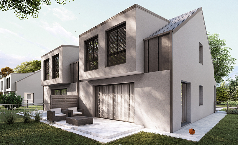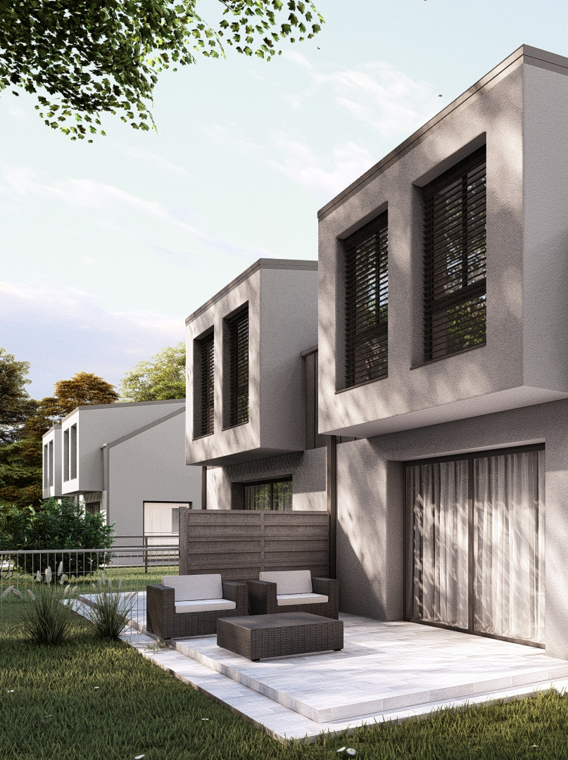Każdy dom to 116 m² dobrze przemyślanej powierzchni z przestronnym salonem, dużymi przeszkleniami i funkcjonalnym garażem. Do tego ogród o powierzchni idealnej na rodzinne spotkania, zabawę z dziećmi czy odpoczynek wśród natury.